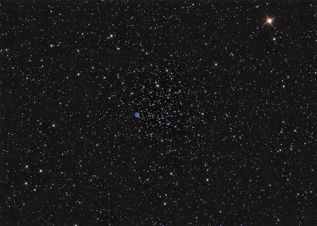 Comments: This image of the open cluster M46 contains the planetary nebula known as NGC 2438 that lies between